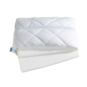 Der Kern besteht aus einer synthetischen Füllung aus 100% Polyester Microfaser und 2 Einlegeplatten aus Visco-Spezialschaum in unterschiedlicher Höhe (2cm und 3cm).
