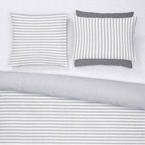 Die Christian Fischbacher Bettwäsche Crispy Linen Sommertime in der gestreiften Ausführung Silver Moon passend für dein Kissen. Der Mix aus Leinen und Baumwolle sorgt für ein angenehmes, luftiges Schlafgefühl. Die Bettwäsche hat zwei unterschiedliche Seiten und kann so nach Lust und Laune kombiniert werden.