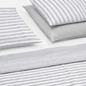 Die Christian Fischbacher Bettwäsche Crispy Linen Sommertime in der gestreiften Ausführung Silver Moon passend für dein Duvet. Der Mix aus Leinen und Baumwolle sorgt für ein angenehmes, luftiges Schlafgefühl. Die Bettwäsche hat zwei unterschiedliche Seiten und kann so nach Lust und Laune kombiniert werden.