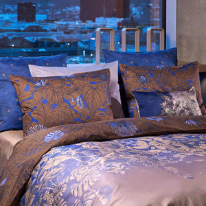 Die Bettwäsche "Blue Hour" von Christian Fischbacher lädt Sie ein, in eine traumhafte Welt einzutauchen, in der Architektur und Natur im Einklang verschmelzen. Inspiriert von üppigen, hängenden Gärten, ziehen sich goldene Blüten und Blätter anmutig über Säulen und Fensterbögen. Ein besonderer Farbverlauf von tiefem Nachtblau bis hin zu sanftem Sand spiegelt die neuesten Trends aus Mode und Lifestyle wider und verleiht der Bettwäsche eine exklusive Note.