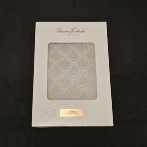 Die Bettwäsche "Belle Epoque Verso" von Christian Fischbacher wird von einem traditionsreichen, italienischen Familienbetrieb in der Lombardei gewoben. Über das grafische Dessin verlaufen dutzende dekorativ angeordnete Halbkreise, die an Fächer oder Federn erinnern.