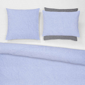 Der Duvetbezug hat die Farbe Morning Sky (056), im Washed Look (Bügelfrei) ist mit einem Reissverschluss versehen.