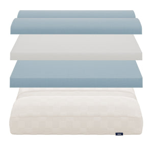 Der Kern besteht aus einem atmungsaktivem Gelschaum mit 2 Einlegeplatten aus viskoelastischem Memoryschaum (3 cm Höhe) und Gelschaum (4 cm Höhe).