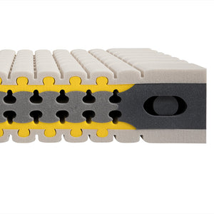 Der Hybridkern der Grandessa Matratze vereint Elemente aus EvoPoreHRC-Schaumstoff je nach Zone mit Visco-Elementen (für Schulter und Nacken) und mit dem AirBox-System (Lordosenstütze LORS).